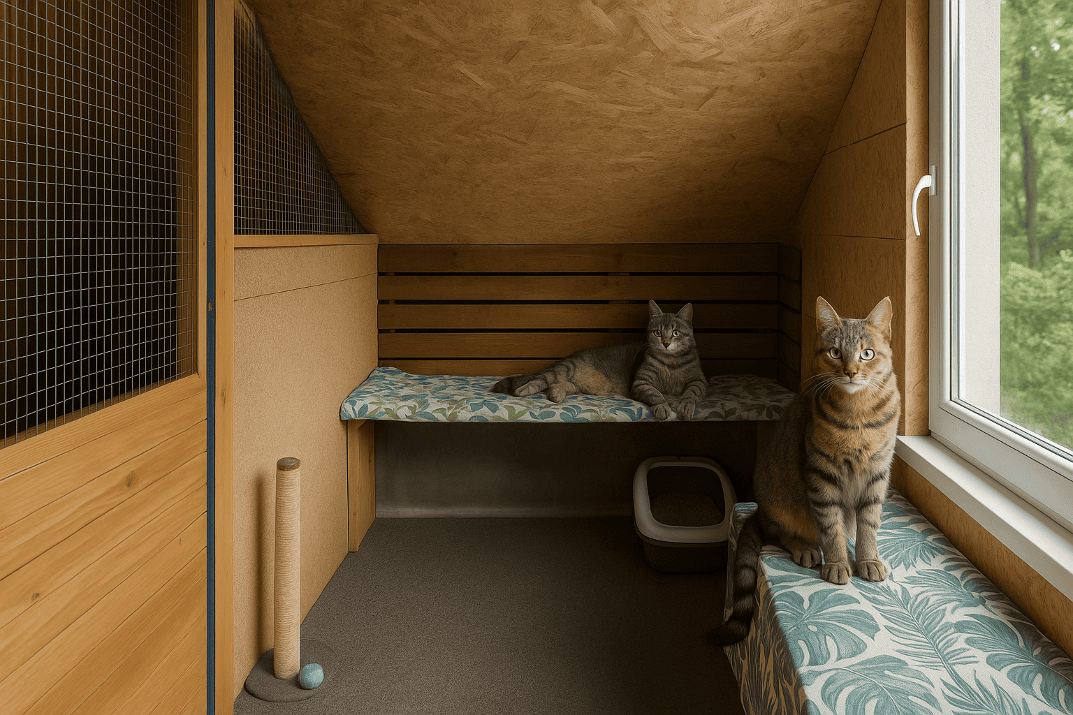 W Kącie Pupila zapewniamy kotom nie tylko opiekę, ale i warunki, które pozwalają im poczuć się bezpiecznie i swobodnie. Nasze pokoiki zostały zaprojektowane z myślą o kociej naturze – są przestronne, bogate w półki, kryjówki i miejsca do wspinaczki. Dzięki temu każdy kot może wypoczywać, obserwować otoczenie z góry i eksplorować przestrzeń w swoim własnym tempie.